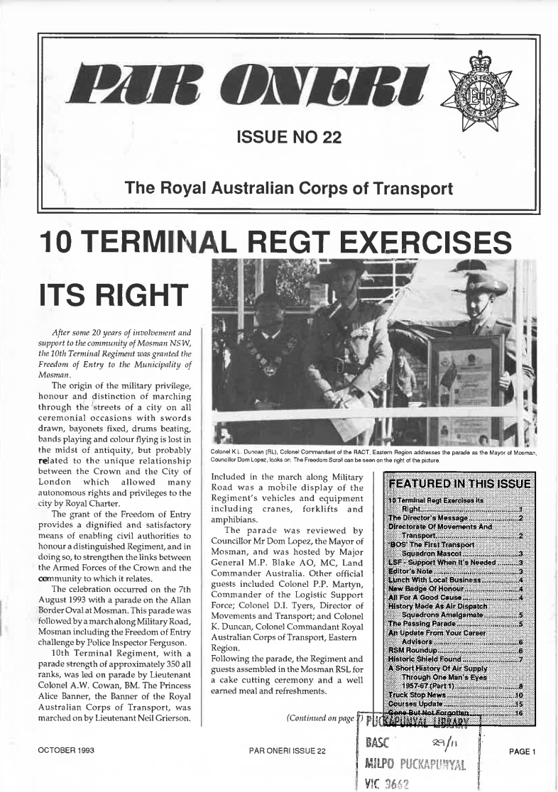 Australian Army Transport Journal (AATJ) PAR ONERI